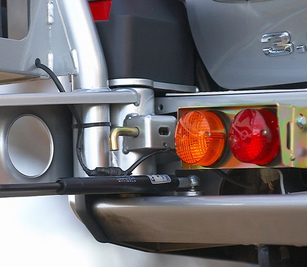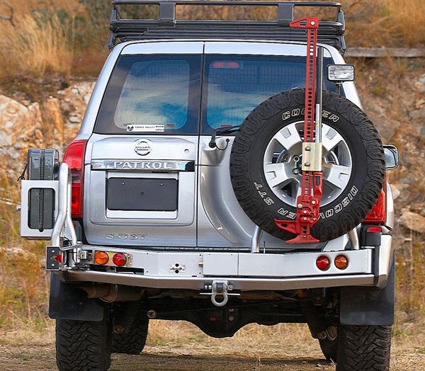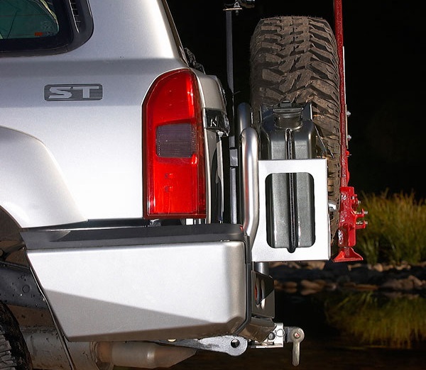 Дополнительно задний бампер может быть дооборудован калитками крепления запасного колеса (колес) или крепления запасной канистры.