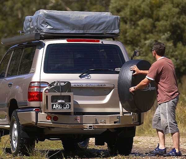Стильные, функциональные бамперы ARB, оборудованные креплением для запасного колеса и дополнительной канистры, обеспечивают повышенную защиту задней части Вашего автомобиля. Задние бамперы могут "нести" два запасных колеса или одно колесо и запасную канистру и поставляются с некоторыми дополнительными приспособлениями, включая крепление для Hi-Jack и фаркоп.Перемещение запасного колеса из-под автомобиля существенно увеличивает дорожный просвет при движении по бездорожью.Задний бампер ARB обеспечивает быстрый, удобный доступ к багажнику Вашего автомобиля.Крепление запасного колеса обеспечивает простоту и удобство использования. Для того, чтобы открыть "калитку" надо просто потянуть за рычаг, чтобы закрыть - просто хлопнуть как обычную автомобильную дверь. "Калитка" снабжена газовыми стойками для обеспечения фиксации в любом положении. При необходимости, когда автомобиль находится на наклонной поверхности, для крепления "калитки" может использоваться металлический штырь-фиксатор.