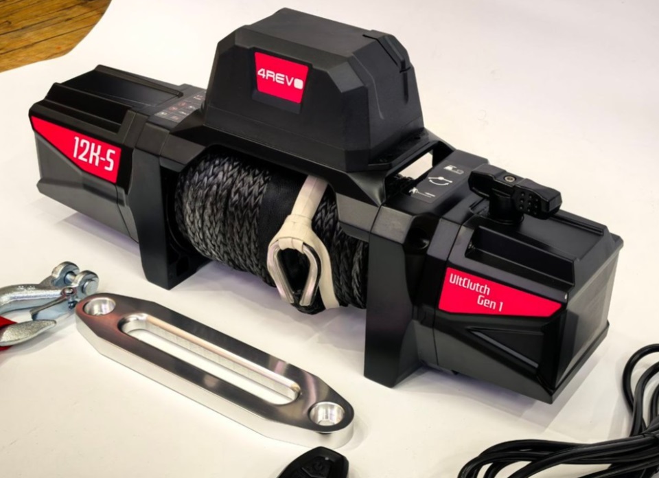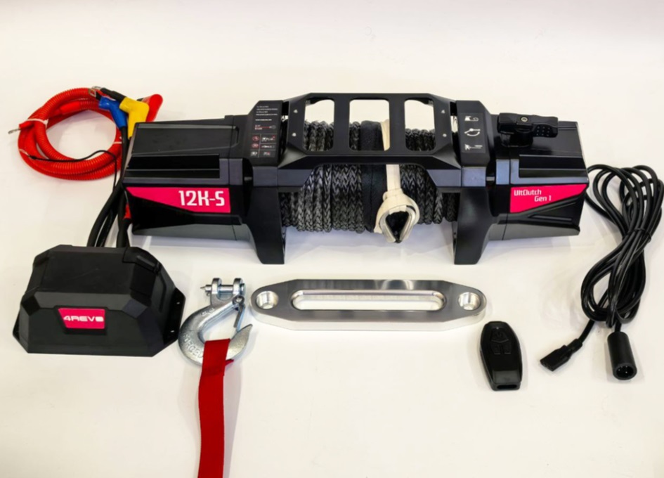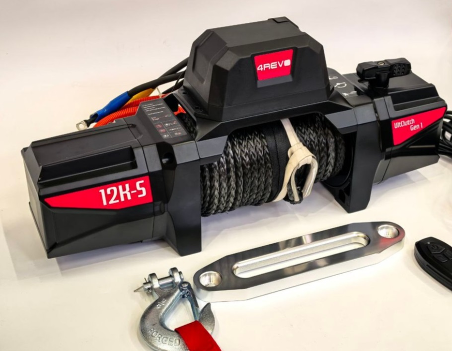 Лебедка автомобильная 4REVO 12K-S 12V (синтетический трос). Тяговое усилие 5443 кг. Комбинированный пульт.