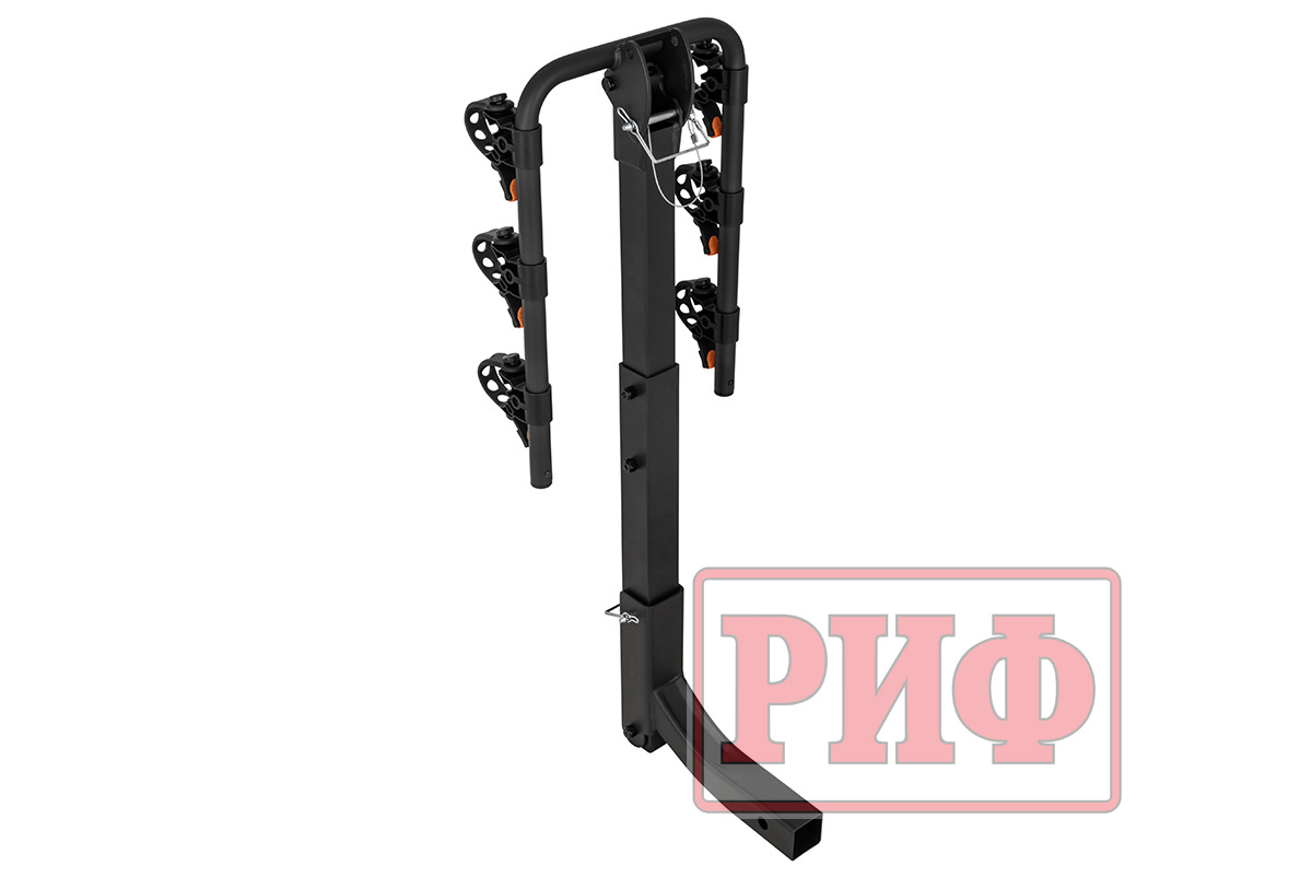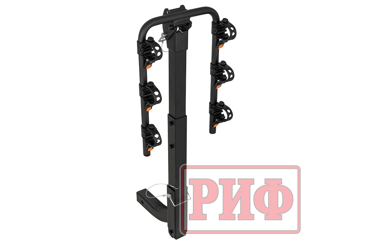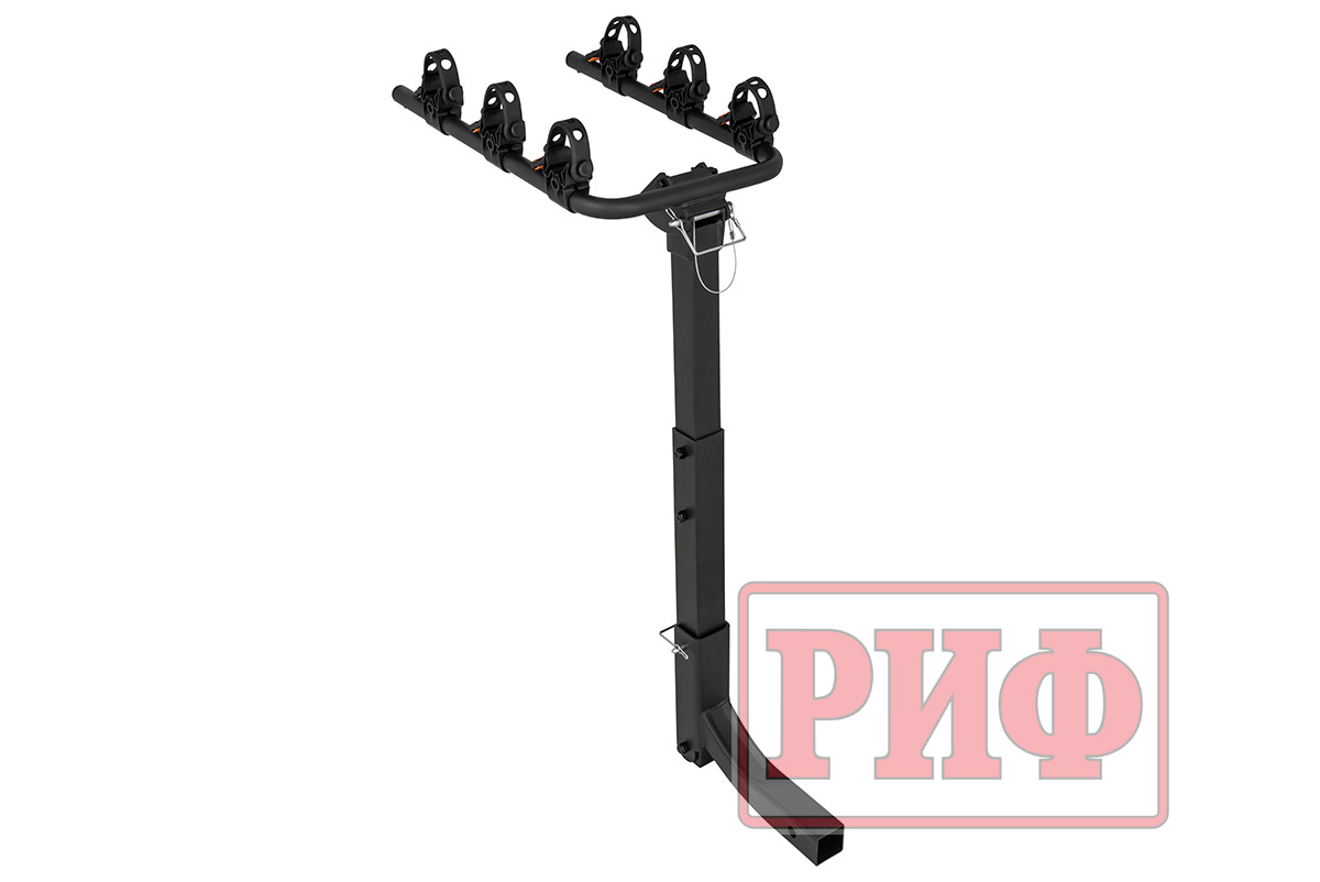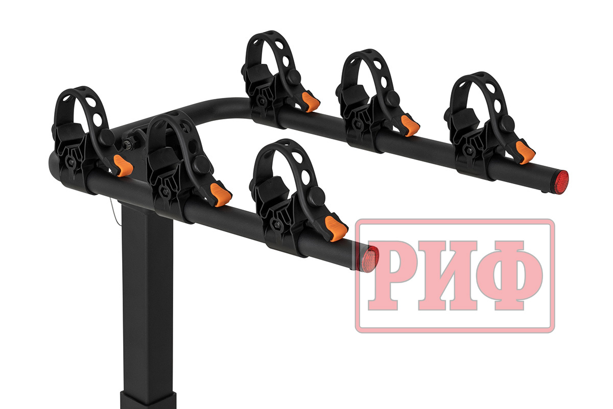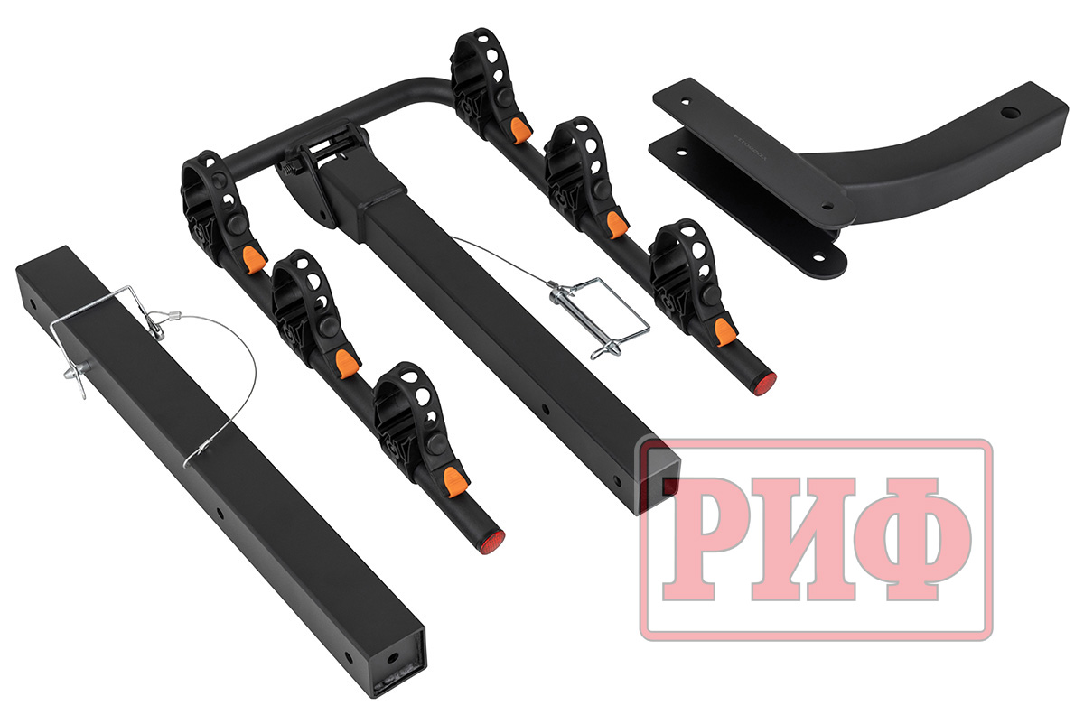 Велобагажник (вставка) РИФ в квадрат для фаркопа на 3 велосипеда Простое, надежное и быстрое в установке велокрепление рассчитанное на перевозку 3-х велосипедов. Устанавливается в силовой бампер или фаркоп с американским 50мм «квадратом». Велосипеды надёжно фиксируются за раму резиновыми креплениями типа Quick Fist. Возможна установка вместе с калиткой запасного колеса с запаской размерностью до 285/70 R17.