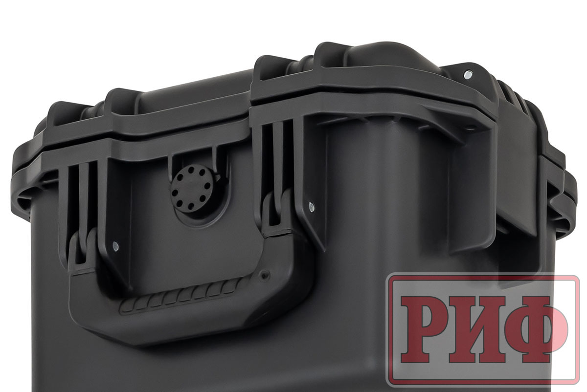 Защитные кейсы РИФ изготовлены из противоударного и чрезвычайно прочного пластика – его можно переехать на автомобиле, и ценное содержимое не пострадает. Кейсы абсолютно герметичны и содержимое кейса гарантировано защищено от доступа пыли и влаги благодаря резиновой прокладке и плотно закрывающейся крышке.