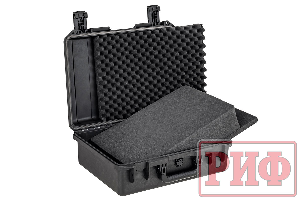 Защитные кейсы РИФ изготовлены из противоударного и чрезвычайно прочного пластика – его можно переехать на автомобиле, и ценное содержимое не пострадает. Кейсы абсолютно герметичны и содержимое кейса гарантировано защищено от доступа пыли и влаги благодаря резиновой прокладке и плотно закрывающейся крышке.
