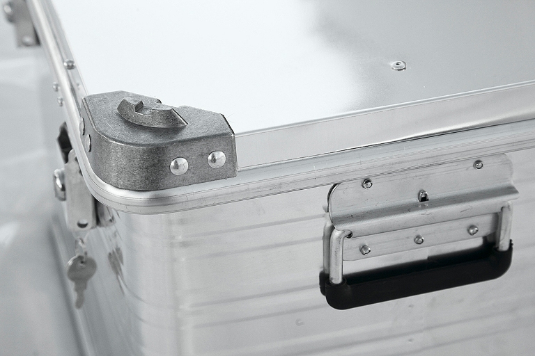Прочность ящика обеспечивается за счёт двух мощных ребер жёсткости расположенных по периметру ящика в верхней и нижней части и штампованных ребер боковых стенок. Крышка фиксируется к ящику на крупных усиленных стальных петлях, а её открытие ограничивается капроновыми ремнями. Два замка с защелками обеспечивают надёжное закрытие и достаточную плотность прилегания крышки к уплотнительной резинке, обеспечивающей надёжную пылевлагозащиту. Замки оснащены личинками под ключ и отверстиями для опломбировки. Верхняя крышка ящика оснащена литыми уголками с упорами для усиления прочности в целом, а также для надёжной фиксации ящиков друг на друге при вертикальном штабелировании. Прочные и удобные ручки рассчитаны на перенос значительного веса.