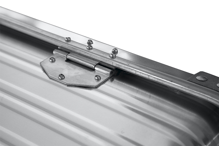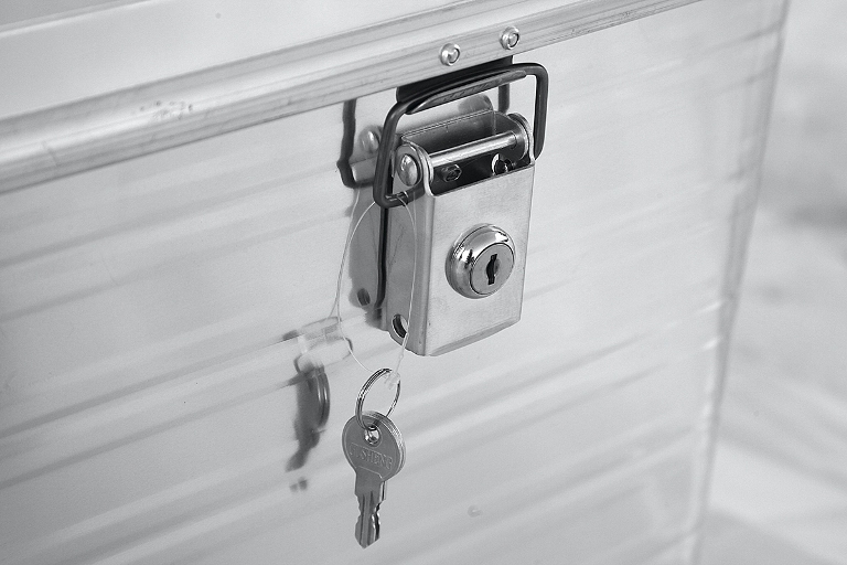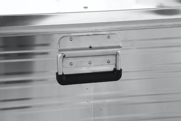 Прочность ящика обеспечивается за счёт двух мощных ребер жёсткости расположенных по периметру ящика в верхней и нижней части и штампованных ребер боковых стенок. Крышка фиксируется к ящику на крупных усиленных стальных петлях, а её открытие ограничивается капроновыми ремнями. Два замка с защелками обеспечивают надёжное закрытие и достаточную плотность прилегания крышки к уплотнительной резинке, обеспечивающей надёжную пылевлагозащиту. Замки оснащены личинками под ключ и отверстиями для опломбировки. Верхняя крышка ящика оснащена литыми уголками с упорами для усиления прочности в целом, а также для надёжной фиксации ящиков друг на друге при вертикальном штабелировании. Прочные и удобные ручки рассчитаны на перенос значительного веса.