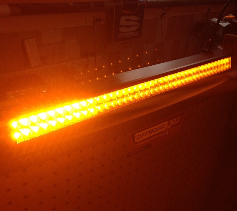 Балка светодиодная дальнего света белый свет, противотуманный (рабочий) - желтый свет.