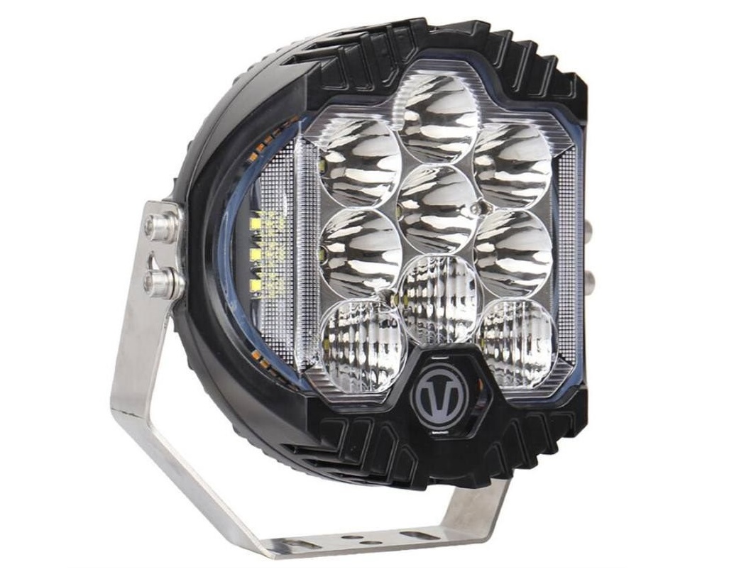 Фара для внедорожного использования, мощный дальний пучок от верхних шести рефлектором в совокупности с нижним рядом растягивающих в горизонтали свет стеклами.