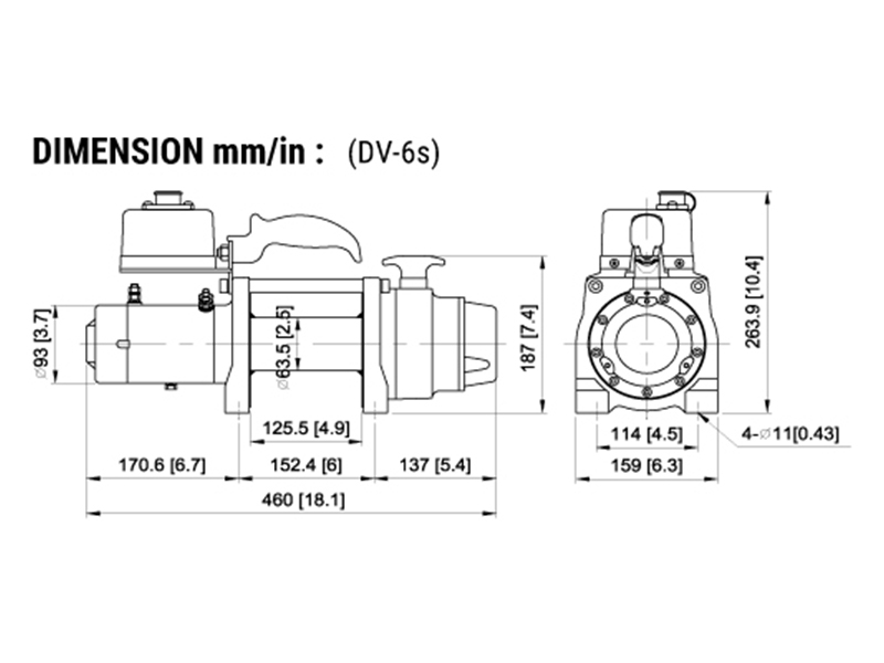 Лебедка электрическая COMEUP DV-6s со стандартным барабаном и синтетическим тросом, 12В. Макс. тяговое усилие - 2722 кг.
