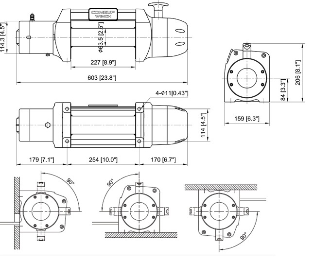 Алюминиевый корпус лебедки способен выдержать 2-х кратную максимальную нагрузку.