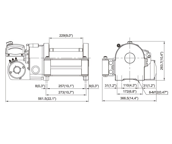 Лебедка червячная с тросоукладчиком Come Up Wolf 12.0 , 24 В. Макс. тяговое усилие 5443 кг, длина троса - 30 м.