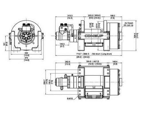 Лебедка гидравлическая Bison 20 длинным барабаном. Макс. тяговое усилие 9 070 кг.