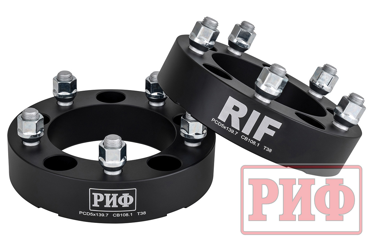 Проставки колёсные РИФ 5x139,7, ЦО 108 мм, толщина 38 мм, 14x1,5 (2 шт.).