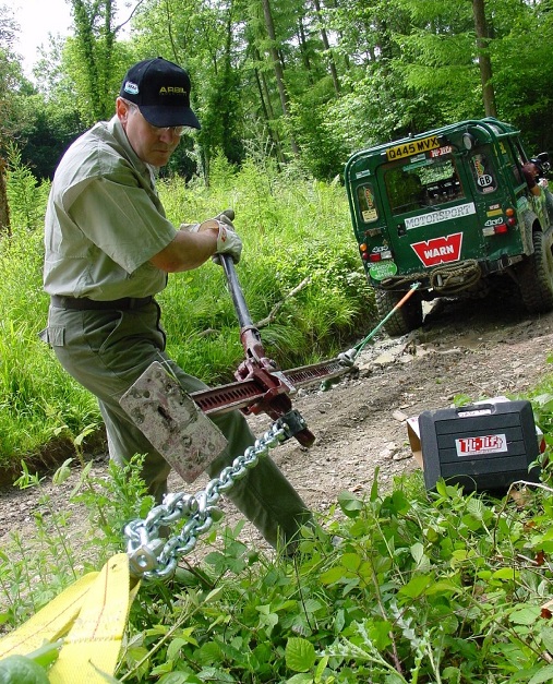 Благодаря наличию петель он может использоваться как мощная ручная лебедка. В этом случае необходимо иметь толстую цепь или металлический трос с петлями, а также корозащитную стропу и страховочный трос. Дополнительные аксессуары позволяют поднимать машину за колесный диск, за бампер, за буксирную проушину.