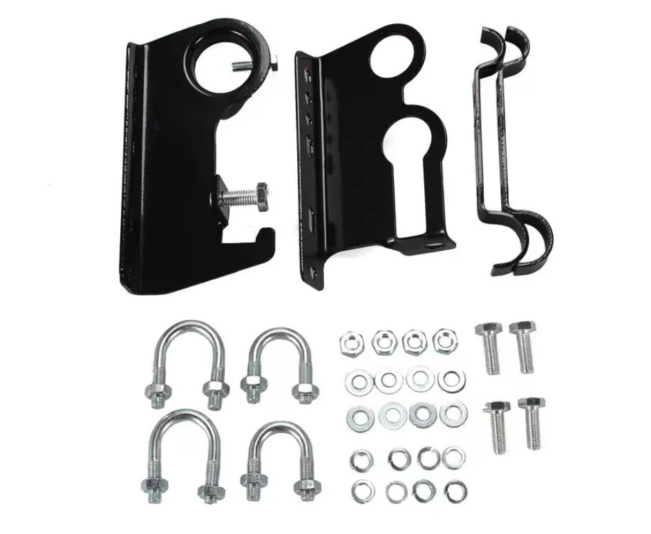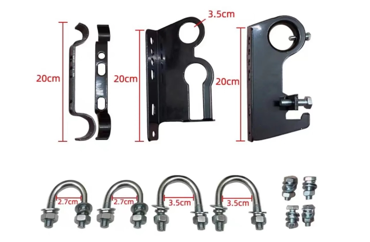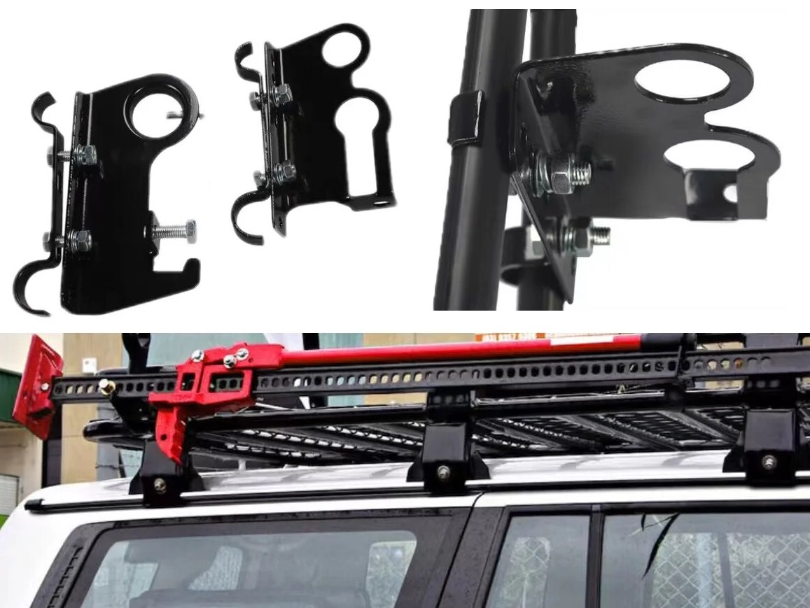 Крепление изготовлено из прочной стали. Предназначено для удобной перевозки реечного домкрата и лопаты на багажнике. Крепеж универсальный подходит на большинство багажников из труб.