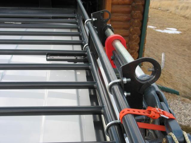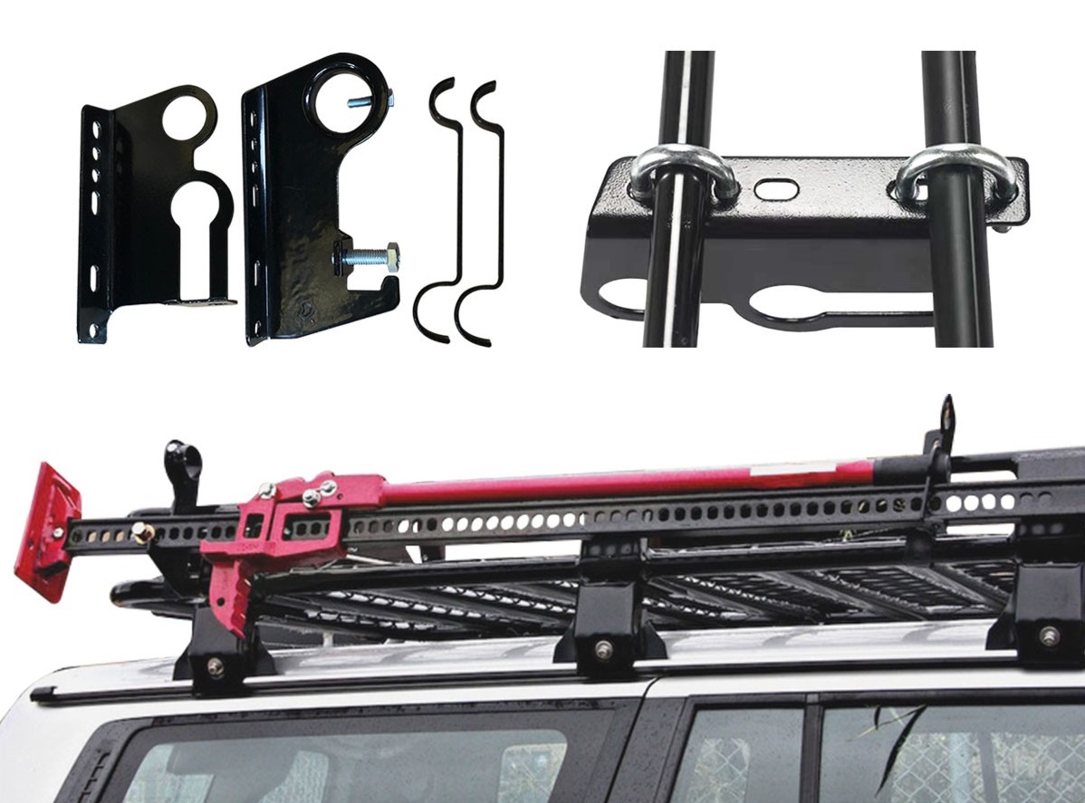 Крепление реечного домкрата Hi Lift и лопаты на экспедиционный багажник.