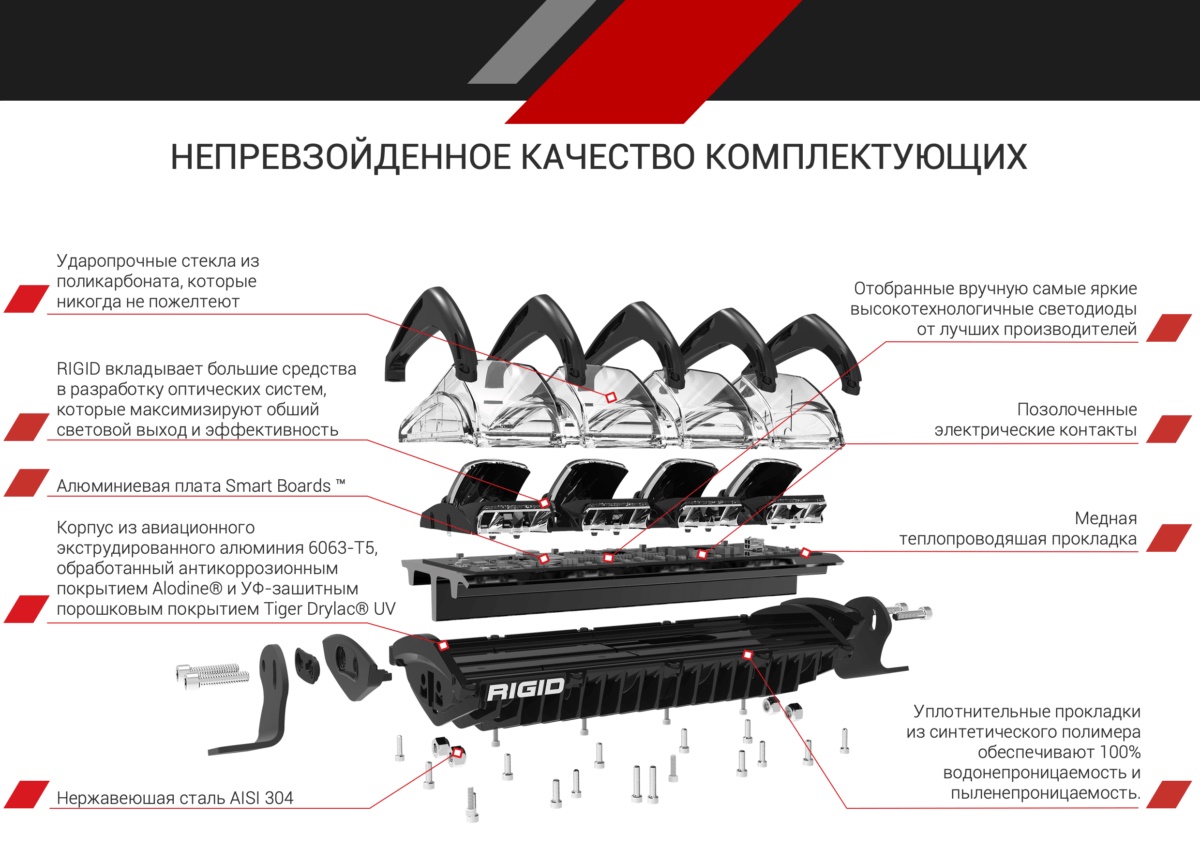 RIGID Adapt 40″ – первая в мире запатентованная светодиодная адаптивная технология, которая обеспечивает максимальный комфорт при использовании на бездорожье. Фиксированные режимы работы только дальнего или ближнего света, уходят в прошлое.