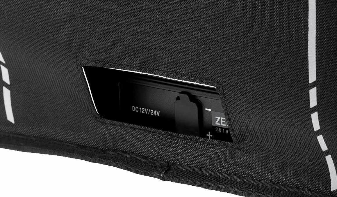Доступ к предметам внутри холодильника легко получить благодаря магнитным вставкам крышки, которые автоматически включаются и отключаются, позволяя работать с крышкой холодильника одной рукой без раздражающих застежек-молний или липучек, в то время как прорези для крепления кабелей удерживают кабели вдали от движущихся частей, когда они находятся на слайде холодильника. Дополнительные функции чехла- сумки включают в себя вырез на панели дисплея для удобного просмотра и управления, а также бонусную открывалку для бутылок!