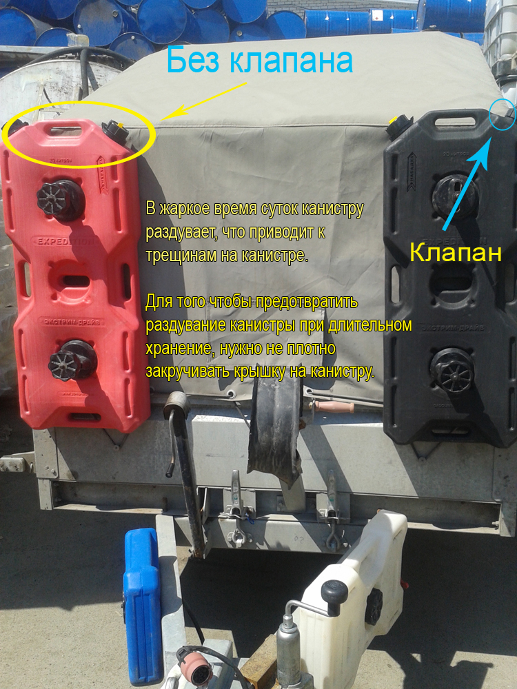 Канистры бывают 2 видов: с клапаном для сброса давления и без.