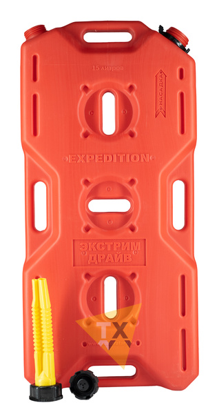 Основное отличие от канистры "Экстрим +" — две горловины, при сливе топлива одну крышку можно открутить для быстрого опорожнения канистры. Также данная канистра комплектуется носиком "Драйв" который прячется внутрь канистры.