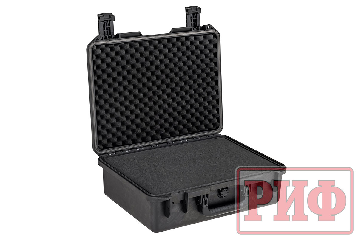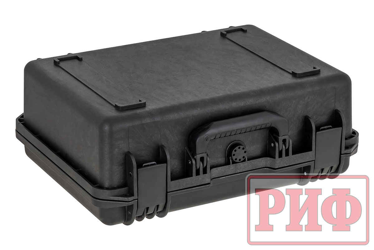 Защитные кейсы РИФ изготовлены из противоударного и чрезвычайно прочного пластика – его можно переехать на автомобиле, и ценное содержимое не пострадает. Кейсы абсолютно герметичны и содержимое кейса гарантировано защищено от доступа пыли и влаги благодаря резиновой прокладке и плотно закрывающейся крышке.