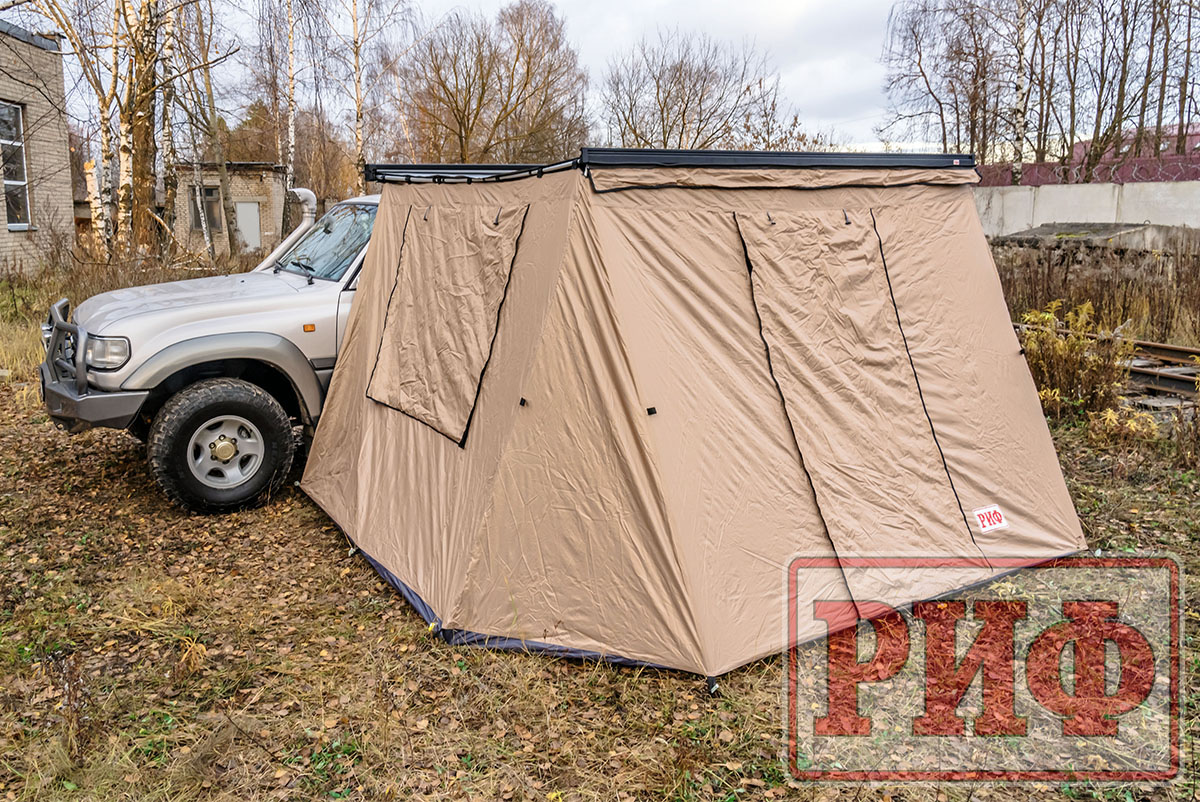 Комплект стенок для автомобильной маркизы с окнами и дверью существенно повысит ваш уровень комфорта на природе.