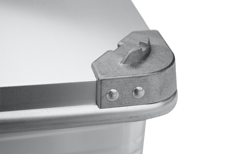 Прочность ящика обеспечивается за счёт двух мощных ребер жёсткости расположенных по периметру ящика в верхней и нижней части и штампованных ребер боковых стенок. Крышка фиксируется к ящику на крупных усиленных стальных петлях, а её открытие ограничивается капроновыми ремнями. Два замка с защелками обеспечивают надёжное закрытие и достаточную плотность прилегания крышки к уплотнительной резинке, обеспечивающей надёжную пылевлагозащиту. Замки оснащены личинками под ключ и отверстиями для опломбировки. Верхняя крышка ящика оснащена литыми уголками с упорами для усиления прочности в целом, а также для надёжной фиксации ящиков друг на друге при вертикальном штабелировании. Прочные и удобные ручки рассчитаны на перенос значительного веса.