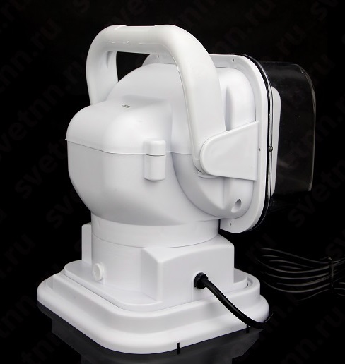 В корпус встроен электромотор, который может поворачивать фару на 360º в горизонтальной плоскости и на 120º в вертикальной;
