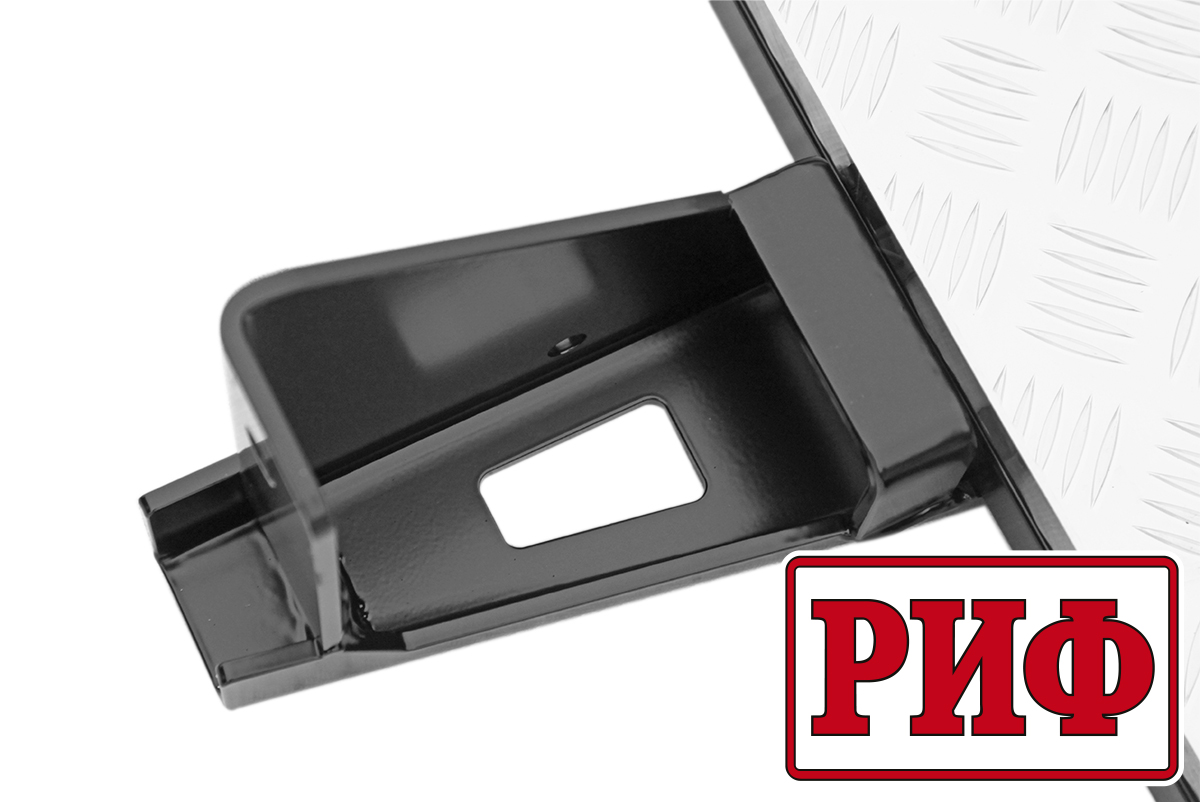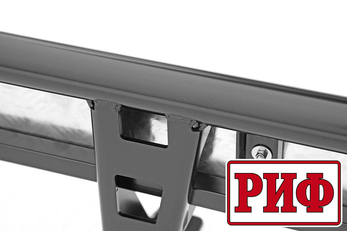 Конструкция порогов РИФ крайне прочна и долговечна, пороги рассчитаны на эксплуатацию в тяжелых условиях – они изготовлены из цельной стальной трубы без применения сварки. Пороги крепятся к раме с помощью стремянок.