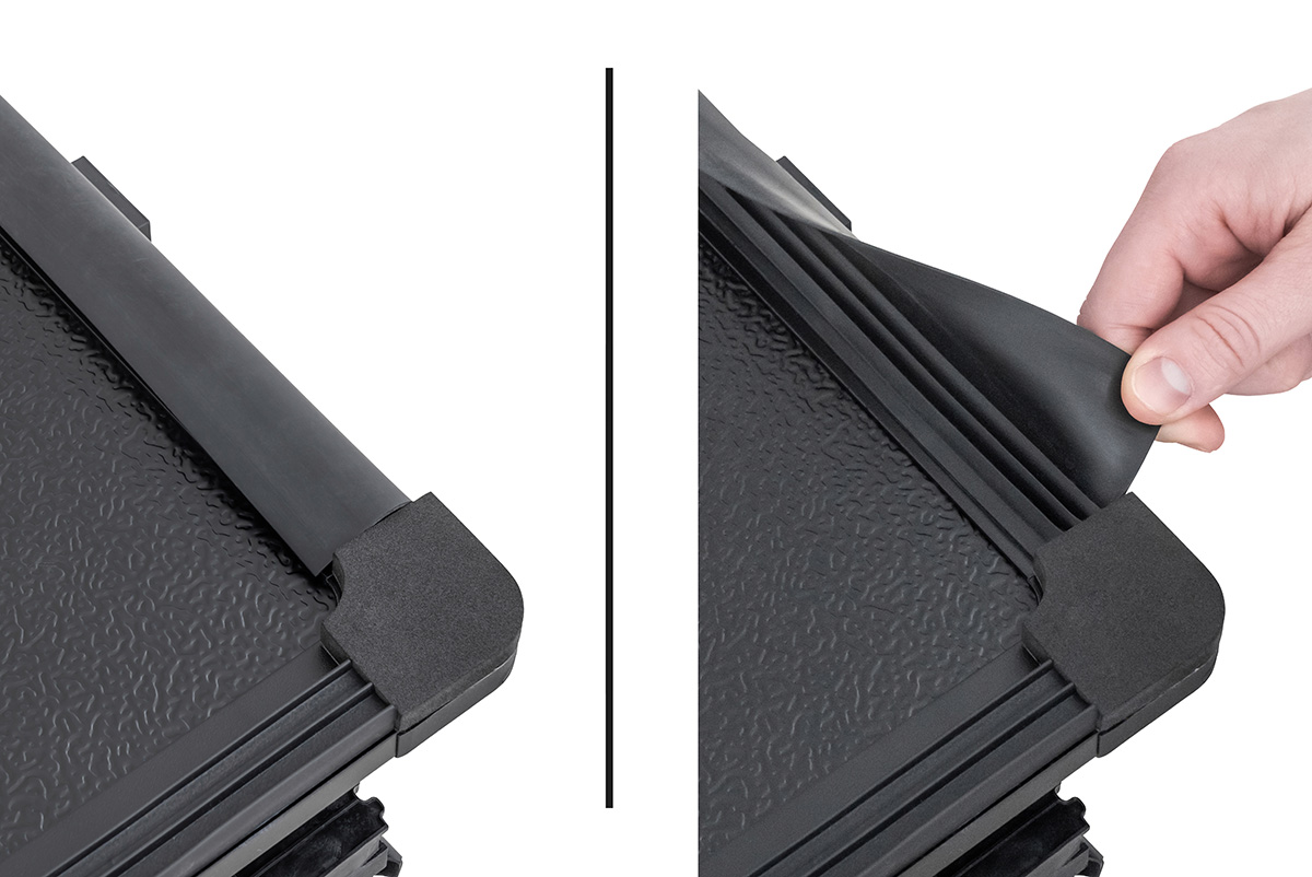 Крышка имеет складную 3-х секционную конструкцию, повторяющую форму кузова автомобиля.