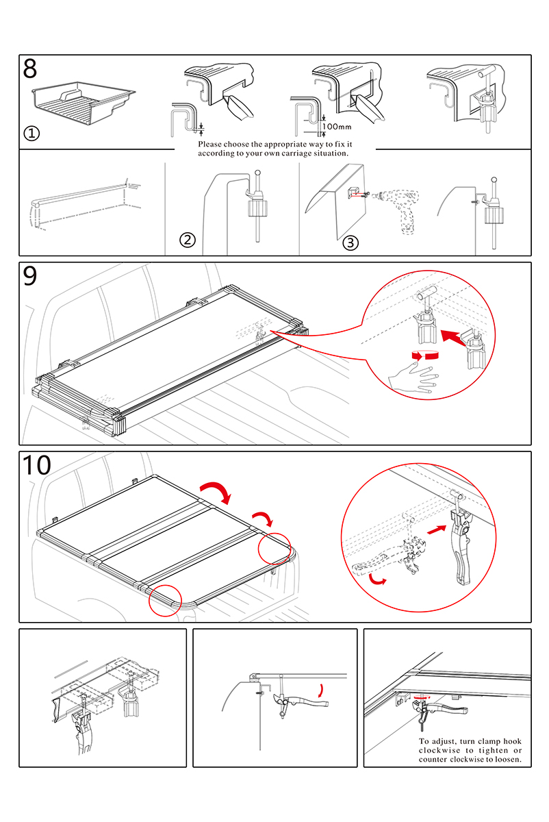 В комплекте также есть дополнительные крепежи для установки крышки на машины с пластиковым вкладышем кузова с заходом на борт.