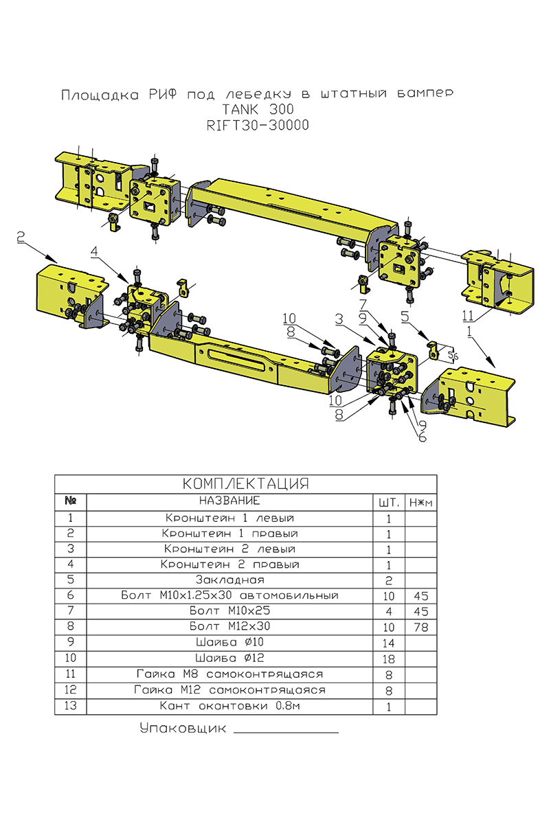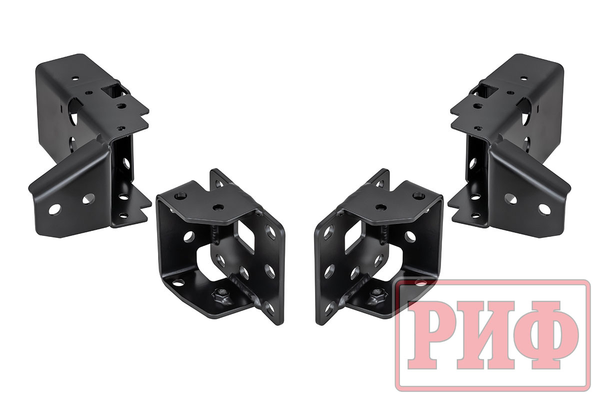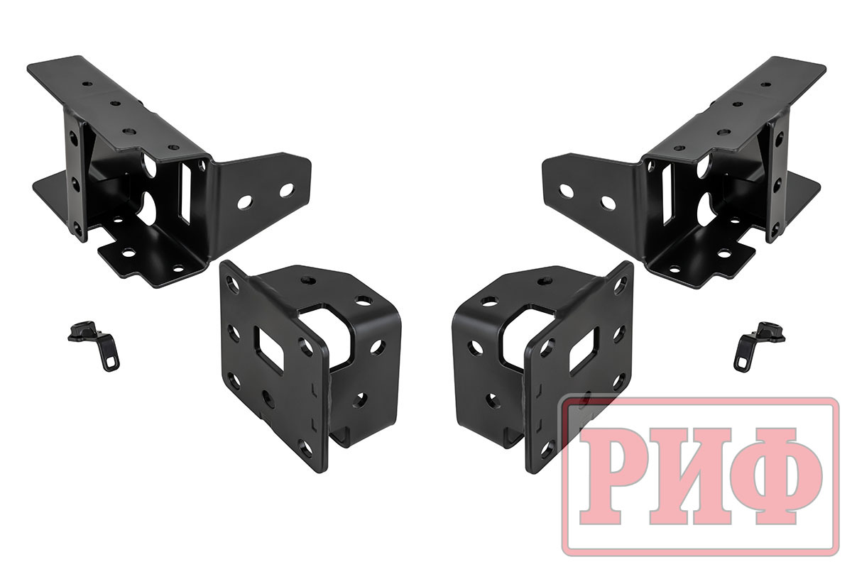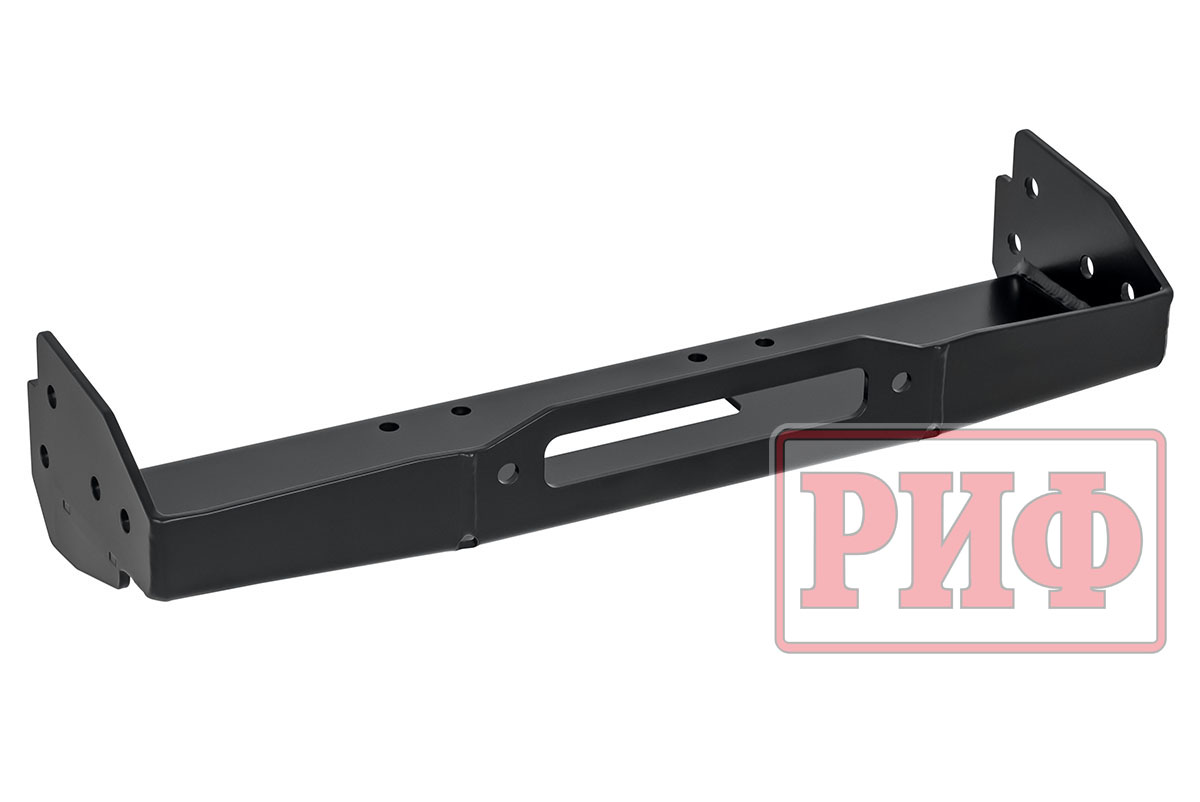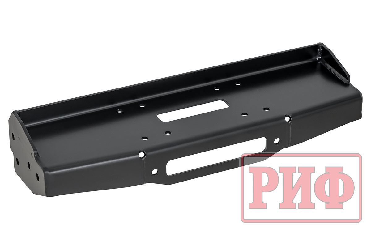 Отличительной особенностью площадки РИФ является её особо прочная усиленная конструкция. Площадка устанавливается на раму автомобиля и не требует никаких вмешательств в конструкцию, кроме вырезания в штатном бампере аккуратного отверстия под клюз или ролики для троса.