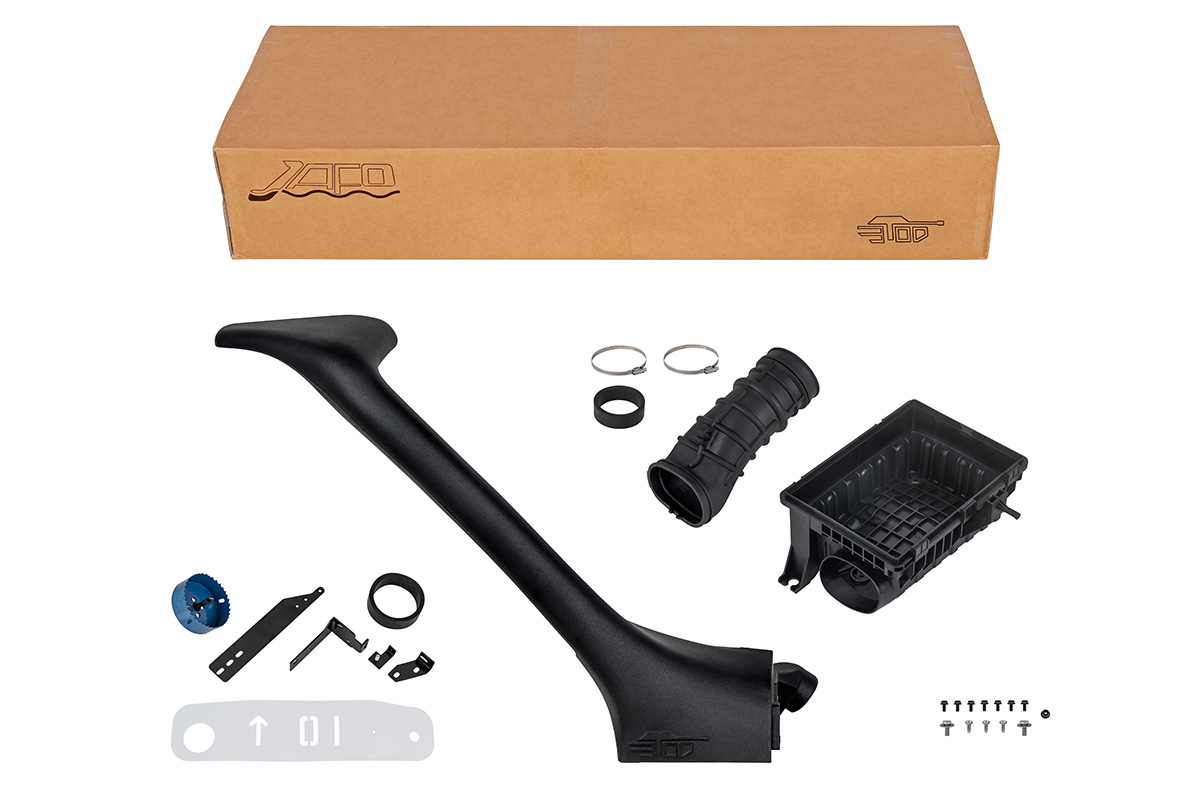 В комплект поставки шноркеля входит новый корпус воздушного фильтра. Конструкция этого корпуса не только прочнее оригинального, но и позволяет герметично подключить шноркель к системе забора воздуха двигателя. Со штатным корпусом обеспечить полную герметичность невозможно.