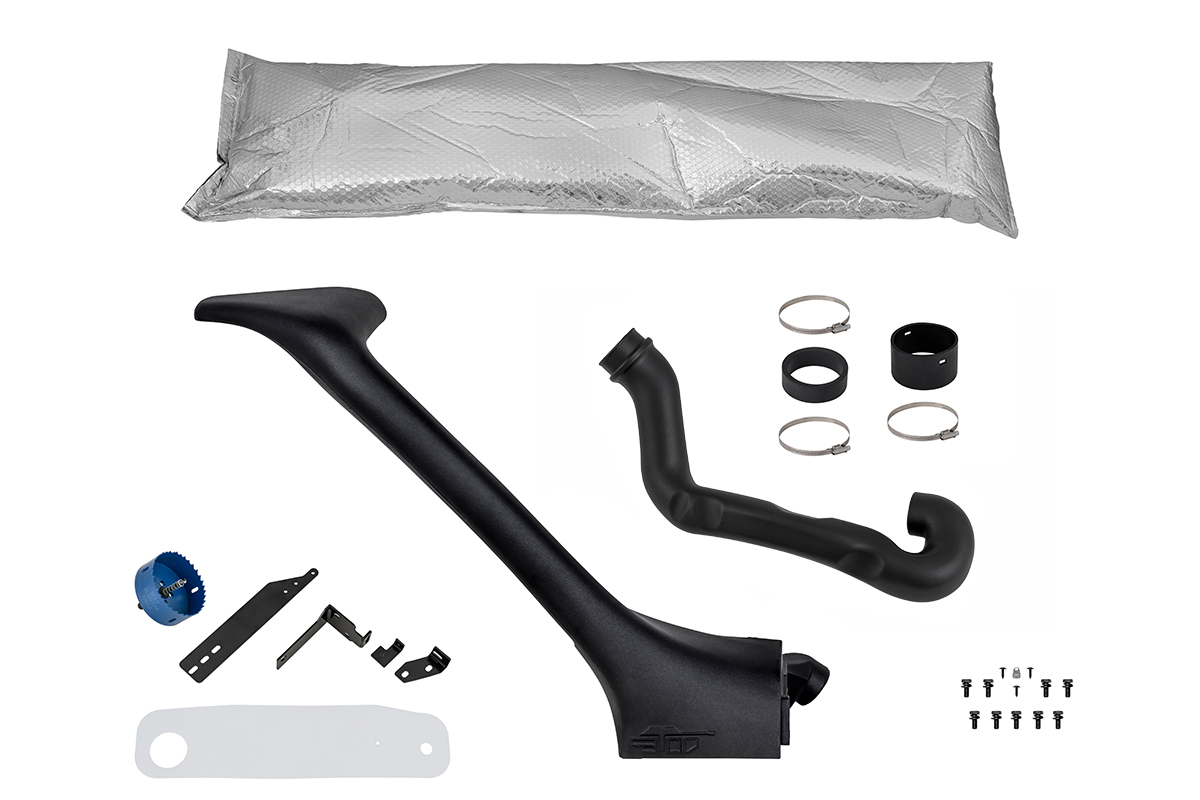 В комплект поставки шноркеля входит новый корпус воздушного фильтра. Конструкция этого корпуса не только прочнее оригинального, но и позволяет герметично подключить шноркель к системе забора воздуха двигателя. Со штатным корпусом обеспечить полную герметичность невозможно.