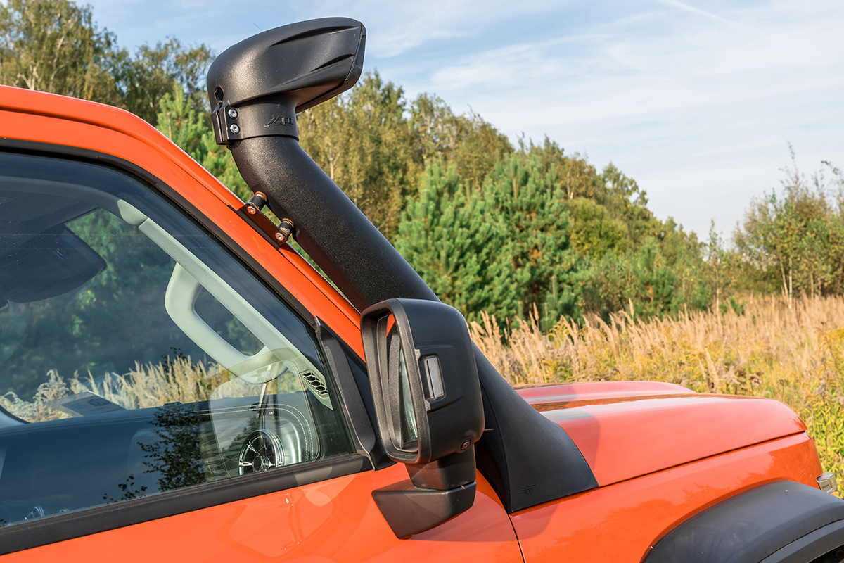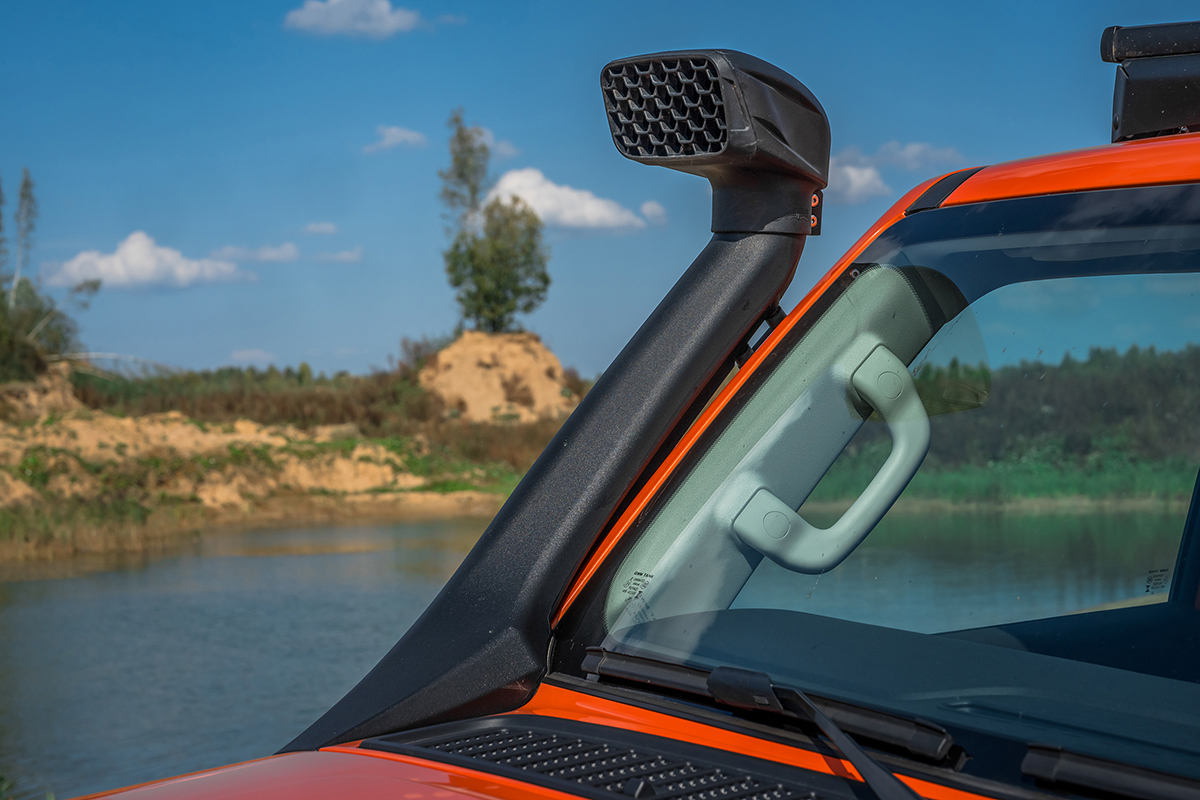 Также, благодаря высоко расположенной точке забора воздуха, обеспечивается поступление в двигатель более чистого воздуха, при езде по пыльным дорогам. Что увеличивает ресурс воздушного фильтра и снижает нагрузку на двигатель.