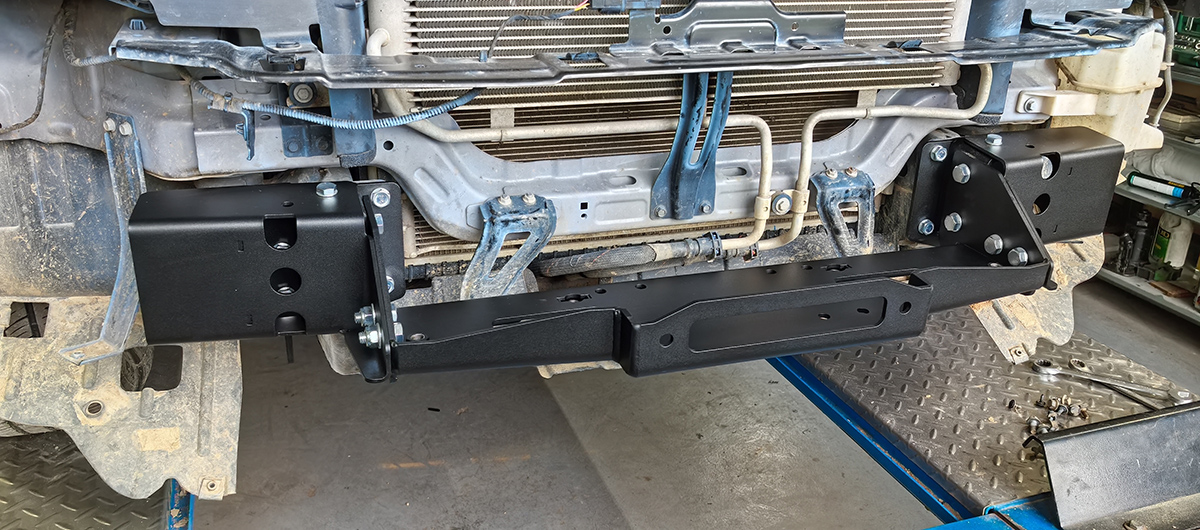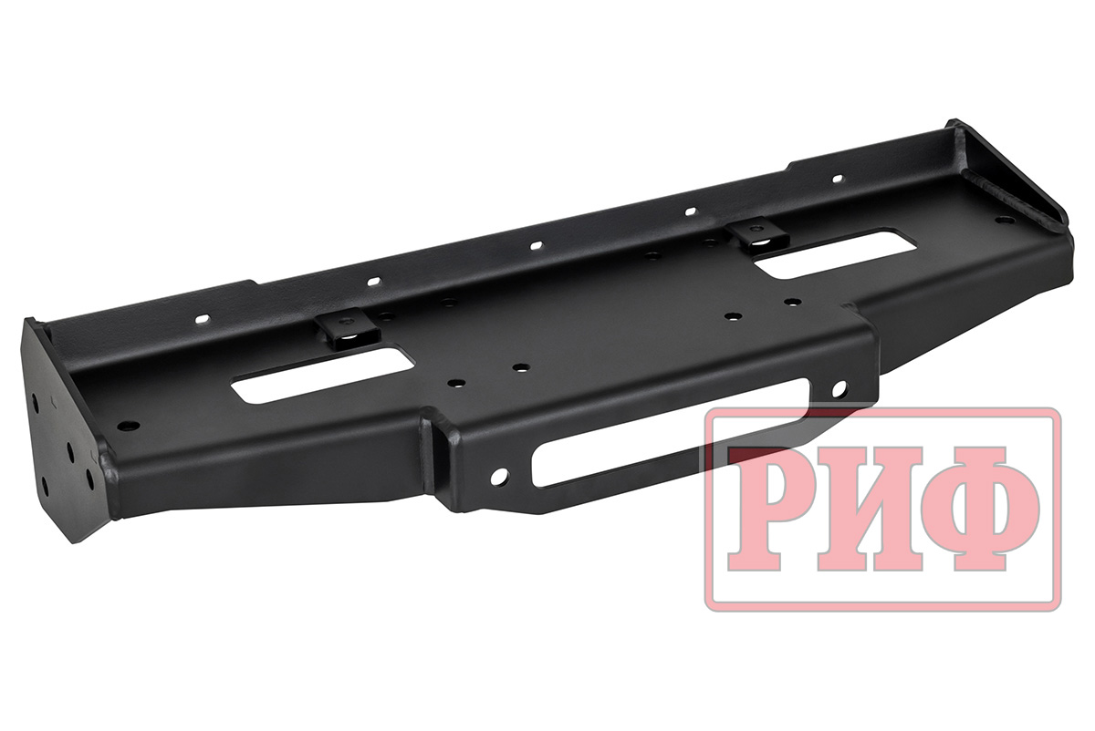 Отличительной особенностью площадки РИФ является её особо прочная усиленная конструкция. Площадка устанавливается на раму автомобиля и не требует никаких вмешательств в конструкцию, кроме вырезания в штатном бампере аккуратного отверстия под клюз или ролики для троса.