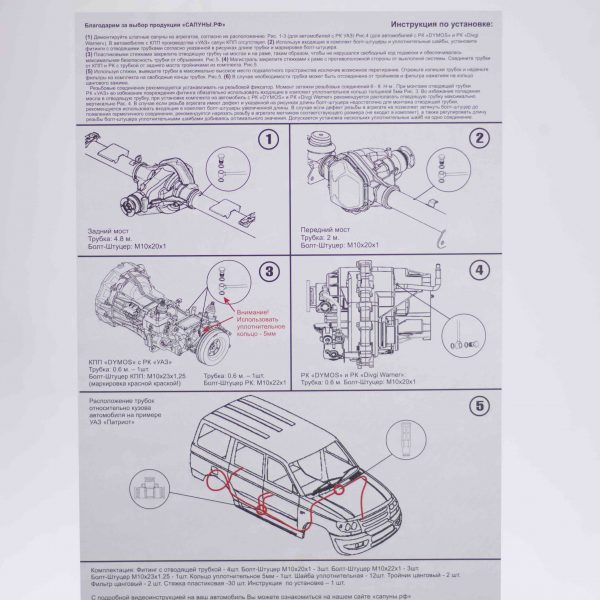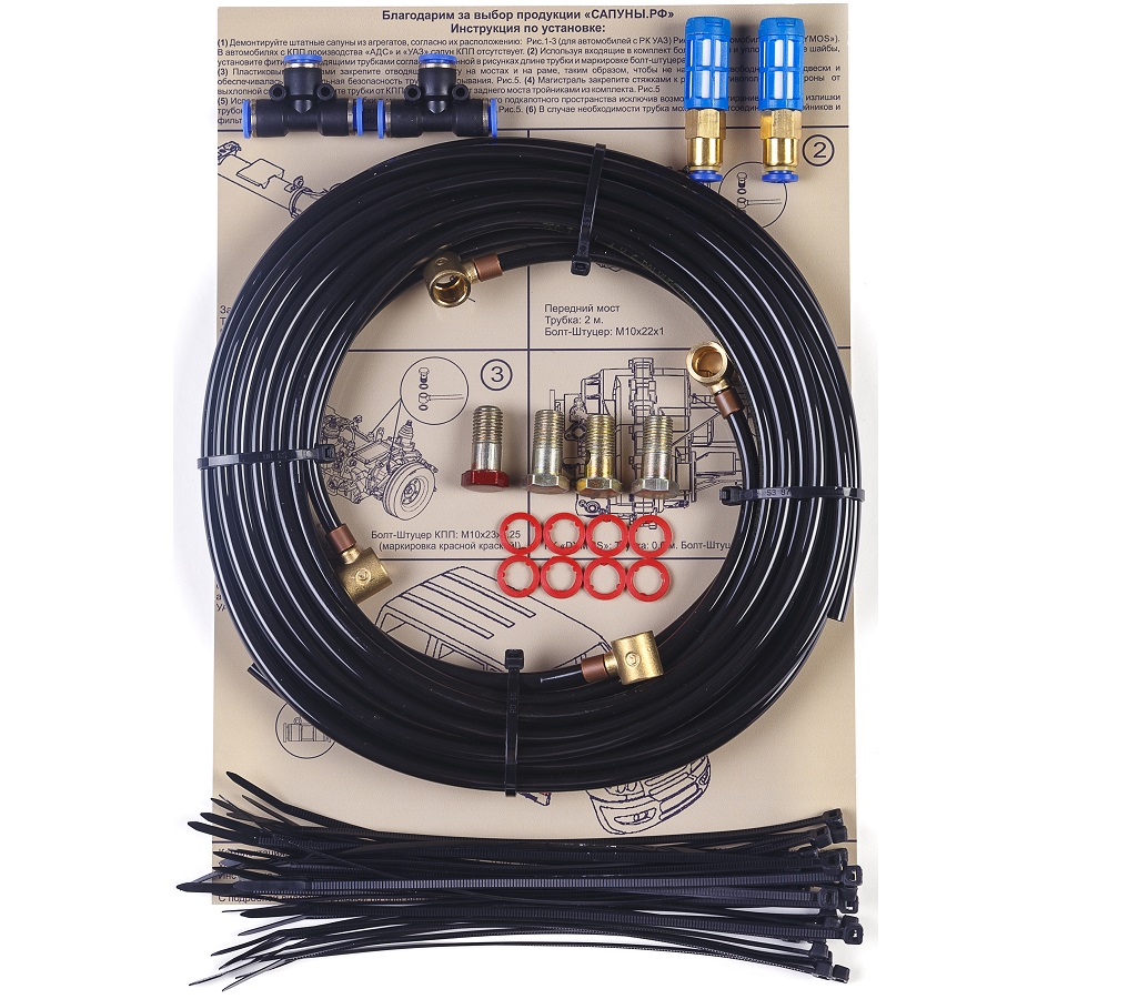 Комплект полностью обновлен с учетом особенностей конструкции автомобиля и собранного опыта за три года. Укомплектован в два раза большим количеством крепежа, а также морозостойкой трубкой с диапазоном температур от -50…+100°С. Металлические фитинги и болт-штуцеры надежно фиксируются к агрегатам. Трубка, обжатая медным кольцом, защищает магистраль от обрывания (соединение выдерживает давление до 9 атм). Позволяет перенести штатные сапуны в максимально высокую по отношению к автомобилю точку, защитить их от попадания воды, пыли и грязи. Избежать течей, частого выхода из строя и замены сальников. Является частью обязательных мер по подготовке автомобиля к преодолению водных преград. Благодаря простой и надежной конструкции он легко монтируется на автомобиль и не требует специальных навыков. При изготовлении комплекта используются только высококачественные детали выдерживающие перепады температур и воздействие химических реагентов. Мы использовали принципиально новую технологию, выгодно отличающуюся от уже суще