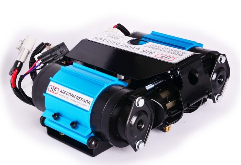 Высокопроизводительный бортовой компрессор CKMA12 специально разработан для включения пневматических блокировок дифференциала HF и предназначен для эксплуатации в экстремальных условиях. Кроме этого, данный компрессор можно использовать для подкачки шин автомобиля и другого оборудования с помощью дополнительного воздушного шланга и насадки (приобретается отдельно). Дизайн и конструкция компрессора разработана специально для установки и подключения внутри кузова внедорожника (место установки выбирается исходя из требований безопасности эксплуатации автомобиля и дополнительного о