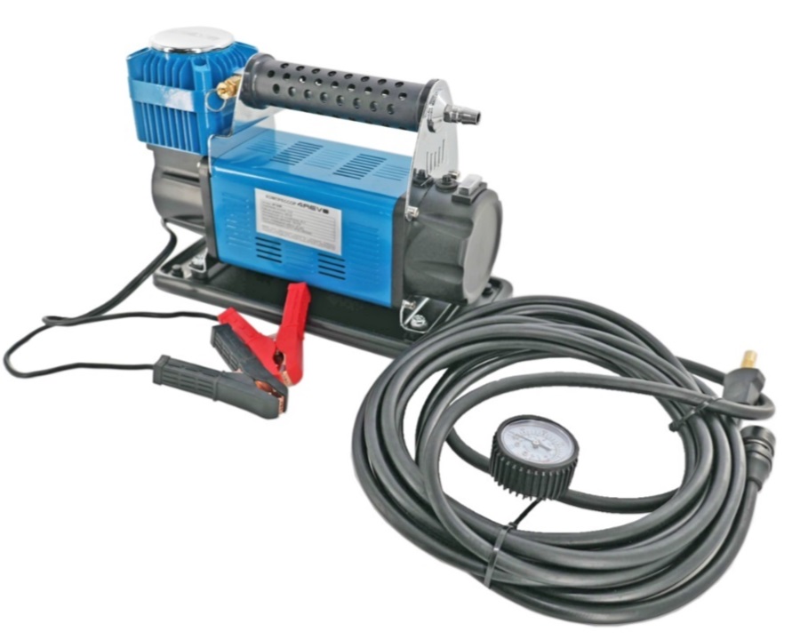 Компрессор поршневого типа, защита от перегрева, высокоточный двушкальный манометр, блок электроуправления, перепускной клапан, набор переходников для накачивания велосипедов, мячей, матрацев, удобная сумка для храниения.