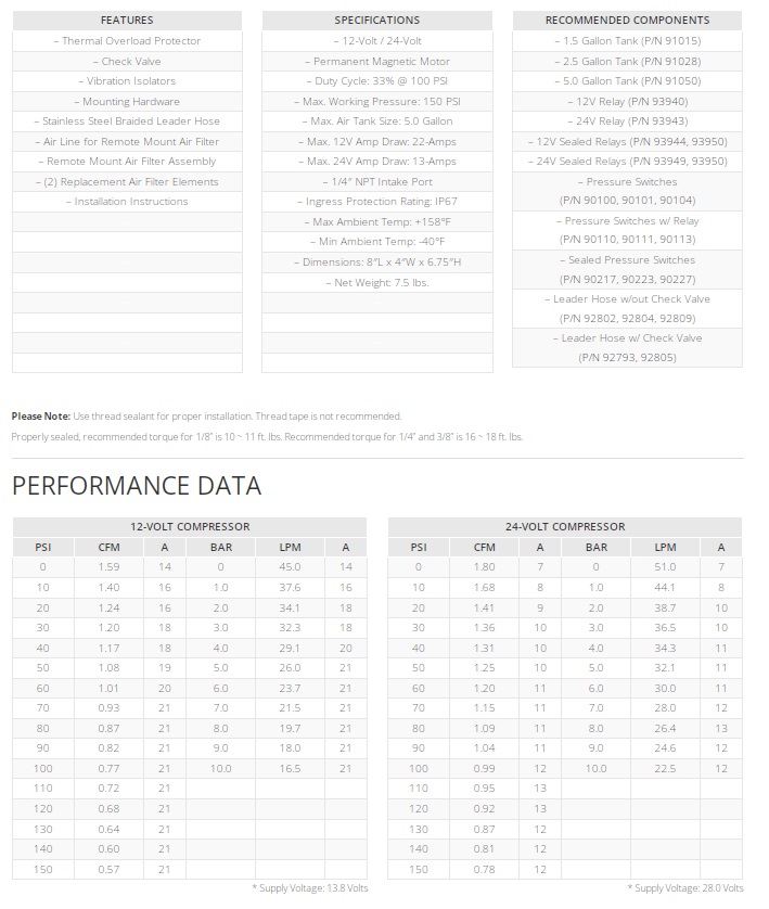 Технические характеристики компрессора 12V Viair 325C