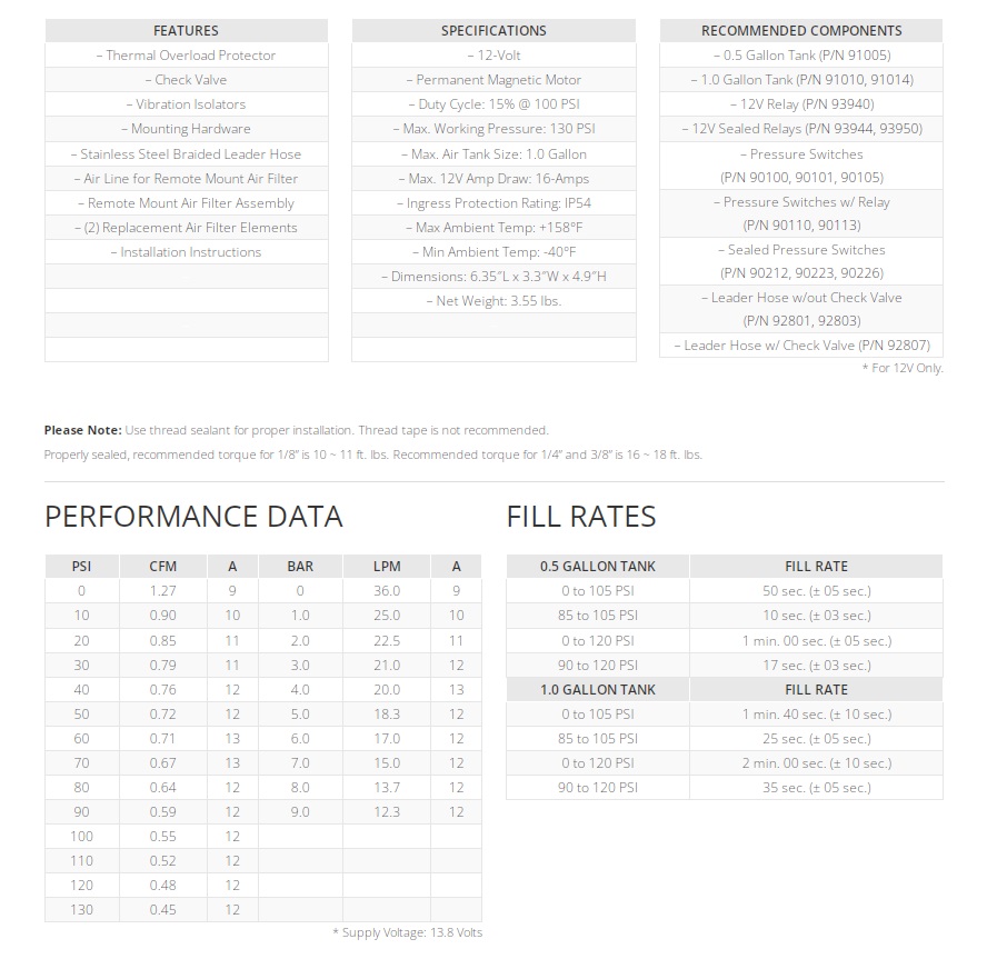 Основные характеристики стационарного компрессора 12V VIAIR 100C 10010V: