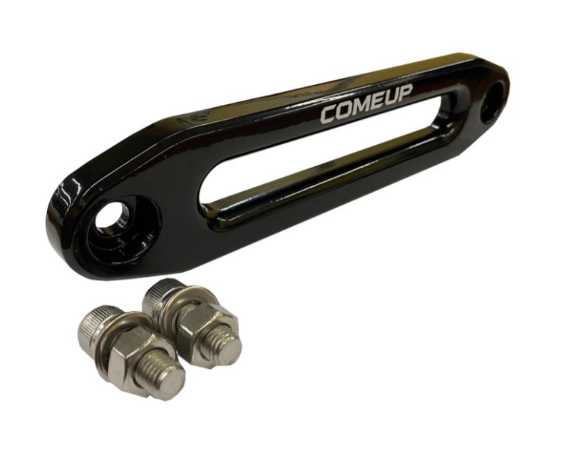 Клюз устанавливается на лебедку вместо роликовых губок при использовании синтетического троса. Производится в США, цвет черный по верху гравировка Come.up. Материал дюралюминий, в комплект входят потайные винты под внутренний шестигранник и гайки.