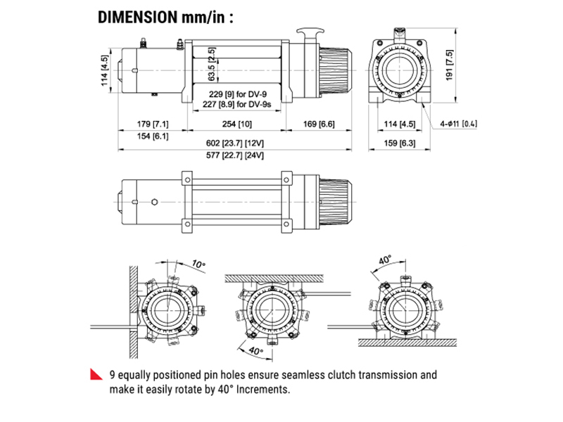 Т-образная эргономичная рукоять для свободного разматывания троса (T-ручка перемещенная лишь легким поднятием-и-поворотом освобождает вращающуюся кольцевую шестерню для быстрого разматывания троса. Она может быть зафиксирована в любом из 9 положений - шаг поворота 40 градусов, что дает возможность использовать бамперы различных конструкций).