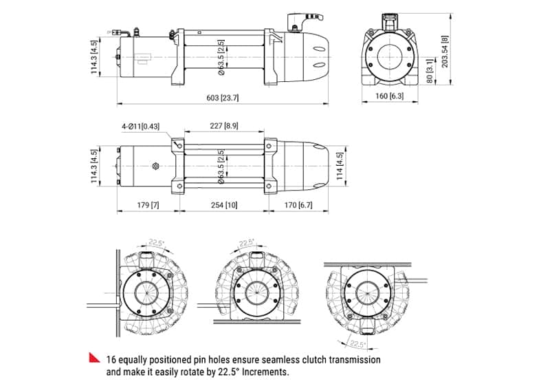 Алюминиевый корпус лебедки способен выдержать 2-х кратную максимальную нагрузку.