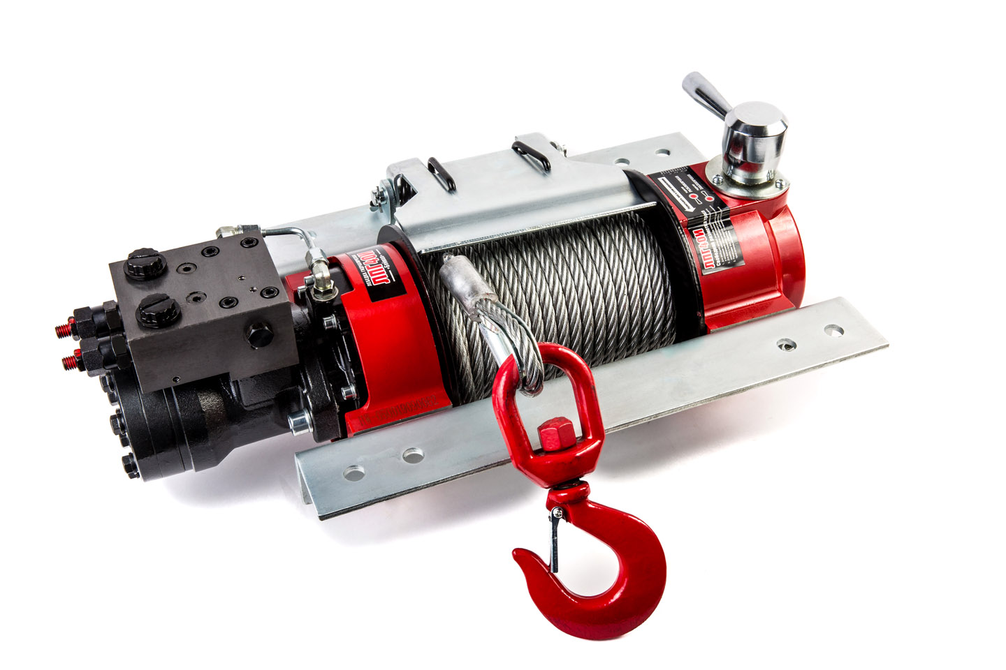 Профессиональная гидравлическая лебедка, предназначенная для эвакуаторов и спецтехники. Несмотря на достаточно бюджетную стоимость, она комплектуется тросоукладчиком и качественным тросом. Тяговое усилие 4 тонны — минимальное в серии. Особенность данной модели — способ крепления с помощью металлических уголков, за счет которых при установке она “усаживается” в платформу. Такое расположение значительно надежнее стандартного, к тому же снижает риск повреждения механизма и помогает сэкономить по
