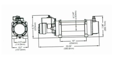 Габариты лебедки ДхШхВ (мм) 565,6 х 157,5 х 202,7