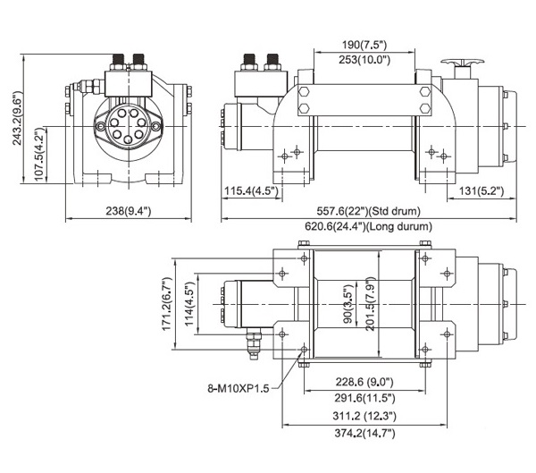 Лебедка гидравлическая Come Up HV-8 , максимальное тяговое усилие 3,6 т. Длина барабана 253 мм.