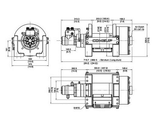 Лебедка гидравлическая Bison 20 со страндартным барабаном. Макс. тяговое усилие 9 070 кг.