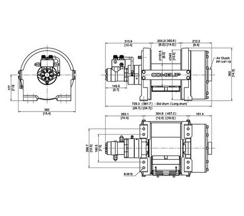 Лебедка гидравлическая Bison 30 со страндартным барабаном. Макс. тяговое усилие 13 600 кг.