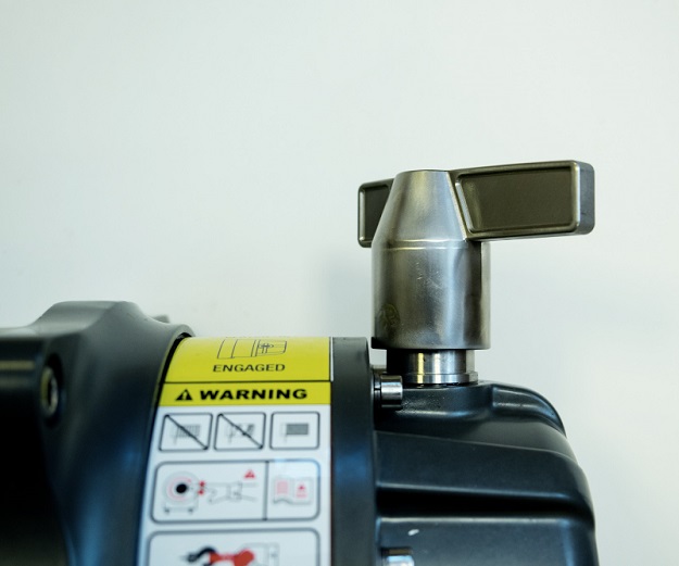 На данной модели лебедки блок соленоидов крепится над мотором. С точки зрения эксплуатации это более удобный вариант, т.к. блок не перекрывает доступ к барабану с тросом и разместить лебедку на площадке можно не перенося блок куда-либо.