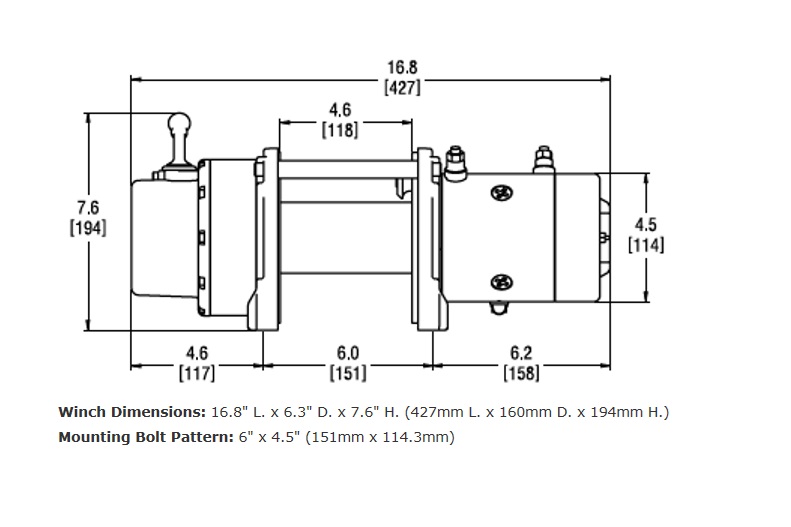 Тяговое усилие: 9.000 фунтов (4.080 кг)