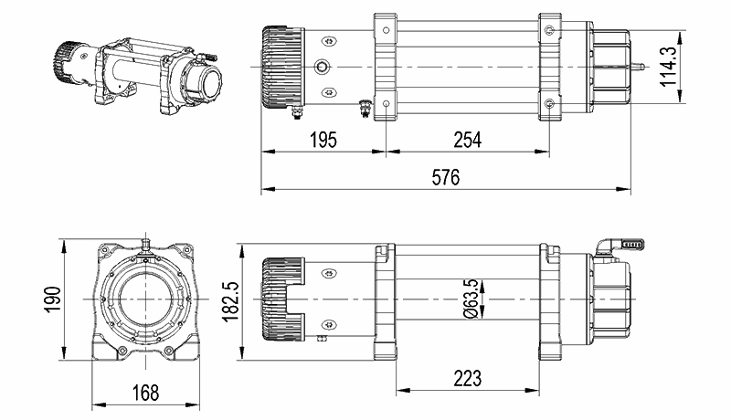 Тяговое усилие 5670 кг. (на первом слое троса)
